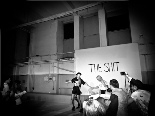Bis vor einem Monat hatte noch niemand von THE SHIT gehört. Bonnie Strange hatte die Blitzidee einen Shop zu eröffnen, in dem eigene Designs, Kollektionen von Freunden und Was-ihr-so-gefällt verkauft werden sollten. In ihrer Wohnung wurde gebastelt, genäht und geraucht - eine große Freude das über Instagram zu verfolgen. Der Shop selbst - nicht größer als 30 qm - sollte diese Woche eröffnen. Doch dann hatte Bonnie vor 11 Tagen die Eingebung nicht nur einen Shop, sondern gleich ihre eigene Schau auf die langen Beine zu stellen. Gestern um 23.30 Uhr trat sie und ihre Shit-Factory den Beweis an, dass wir es hier nicht nur mit einem It-Girl zu tun haben. Bonnie Strange ist eine große Künstlerin die uns in den kommenden Jahren noch einiges zeigen wird. Ein Vergnügen.