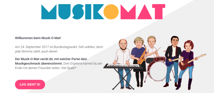 Nicht ganz ernst gemeint, aber dafür ganz unterhaltsam ist der Musik-o-Mat des Musikstreaming-Dienstes Deezer. "Wähle die Musik, die du liebst!" lautet das Motto und mit dem kurzen, aus 9 Fragen bestehenden Test verrät euch die Seite, ob ihr mehr so der Schulz- oder Merkeltyp auf dem Dancefloor seid.