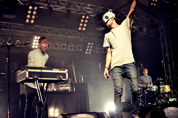 So fallen die Worte, als wir bei unserer Ankunft mit dem Auto euphorisch über die Schotterpiste Richtung Bagger rollen. Beim ausverkauften Splash freuen sich 17.000 Menschen mit uns. Gefühlter Altersdurchschnitt: 18. Aber ey – hier sind wir alle 18. Eine halbe Stunde auf der Halbinsel und ich benutze Worte wie „represent“, „abchillen“ und „krass cool, Alter“. Aber es ist halt auch einfach krass cool, Alter. Während hinter der Hauptbühne Cro, Casper, Savas, Diplo und Nas (gefühlt) zusammen Vodka Relentless Berry zischen, drehen die Kids auf dem Rest des Geländes voll auf. Von weiter oben betrachtet zappeln ihre Caps (Neudeutsch auch: Raphelme) in der Sonne wie buntes Konfetti. Und spätestens als Marsimoto zwischen Tausenden von Armen und Bengalos in einem Schlauboot über die grünen Massen schwebt, sind wir alle ein großes, glückliches Ganzes.