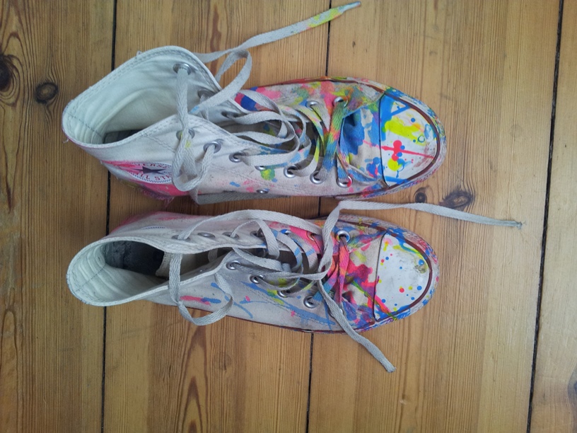 Neonsplash ist der kleine, unbekanntere Bruder vom Holi Festival. Hier wird nicht mit Pulver geworfen, sondern mit flüssiger Farbe. Daher überraschte es nicht, dass der Postbahnhof an diesem Abend komplett mit Folie ausgelegt war. Und wir durften uns komplett mit den Farben vollsauen. An Biertrinken war nicht zu denken, die Farbe war schließlich überall - im Bier, in den Augen, in den Haaren. Je weiter man Richtung Bühne ging, desto weniger Luft bekam man. Folie + Farbe ist eine komplizierte Mischung, wenn es um gute, frische Luft geht. Als ich gegen 7 Uhr betrunken daheim ankam, musste ich dreimal duschen. Der Geruch der Farbe blieb jedoch weit über eine Woche in meinen Haaren hängen. Was soll ich sagen? Wunderschön. Unvergesslich. Wie oft darf man sich schon als Erwachsener von oben bis unten mit Farbe einschmieren? Meine Chucks habe ich bis heute nicht gewaschen.