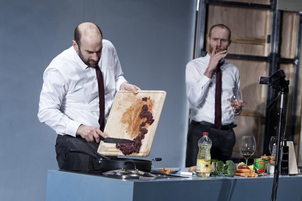 Die Rezepte, die da nachgekocht werden, sind von Leonardo da Vinci. Immer wieder kommt es (natürlich!) zu Konflikten in der Küche, es geht (natürlich!) um persönliches. Die drei Rollen erzählen aber auch immer wieder von Dingen, die allumfassend sind: Sehnsucht, Liebe, Angst vor Sinnlosigkeit und einem nicht enden wollenden Begehren trotz Enttäuschungen. Eingeladen zum diesjährigen F.I.N.D. läuft das Stück jetzt im Repertoire der Schaubühne. Rodrigo García war mit seinen Produktionen viermal zu Gast beim Festival Internationale Neue Dramatik; bereits 2011 wurde sein Stück »Soll mir lieber Goya den Schlaf rauben als irgendein Arschloch« ins Repertoires der Schaubühne und läuft immer noch.