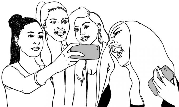 Eine Gruppe von 5 bis 7 zumeist weiblichen Personen, die durch lautstarkes Kreischen, Gackern und kollektives Selfie-Machen alle Augen auf sich zieht.