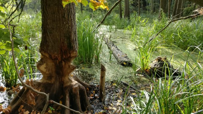 Im Naturpark gibt es nicht nur Hasen, Füchse, Eichhörnchen, Wildschweine, Igel und den seltenen Fischotter, die man mit etwas Glück beobachten kann (falls man beim Wandern nicht lautstark quatscht), sondern auch Biber. Zu Gesicht bekommt man sie selten, aber die typischen an- und durchgenagten Bäume, die man sonst nur aus der Zahnpasta-Werbung kennt, begegnen einem oft an den Rändern der Feuchtgebiete. Den frechen Waschbären kann man nachts auflauern, wenn sie versuchen, die Mülltonnen der waldnahen Häuser auszurauben.