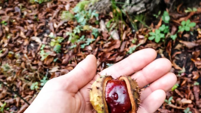 Im Herbst ist die ganze Märkische Schweiz voll mit Beeren, Früchten und Pilzen. Wer kann es sich da schon verkneifen, ein paar von den glatten, glänzenden Rosskastanien aufzuheben und in die Hosentasche zu stecken? Bucheckern sind auch oft und leicht einzusammeln und mit etwas Glück und Erfahrung findet man auch essbare Pilze.
