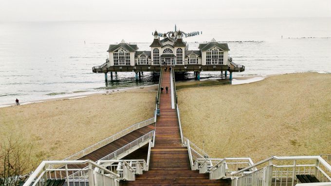 Wo und was sollte man essen: auf der Seebrücke Sellin einen Kaffee trinken und sich schön spießig fühlen