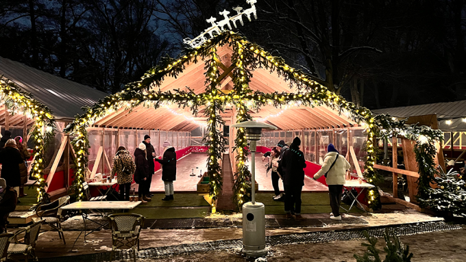 Das Café am Neuen See ist nicht nur im Sommer ein beliebtes Ziel, im Winter geht es hier erst richtig los. Auf den Eisstockbahnen könnt ihr Eisstockschießen und dabei Glühwein und Punsch trinken, Bratwürstchen vom Grill essen oder warme Kartoffelsuppe löffeln – und das alles mitten im Tiergarten. An mehreren Lagerfeuern könnt ihr in den Pausen gemütlich zusammensitzen und euch zwischen den Matches aufwärmen. Mehr Winter Wonderland geht kaum! Auch eure Weihnachtsfeier könnt ihr hier planen – inklusive Weihnachtsmenü.