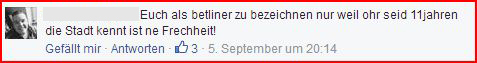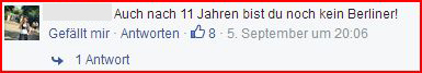Es ist immer der gleiche Shitstorm: Kaum wagt jemand das Unerhörte und schreibt eine Alltagsbeobachtung über unsere Stadt, kommen die Hater aus ihren Löchern. So ging es mir jedenfalls letzte Woche wieder, als ich hier die Frechheit besaß, mich als Berliner zu bezeichnen, obwohl ich nicht hier geboren bin.