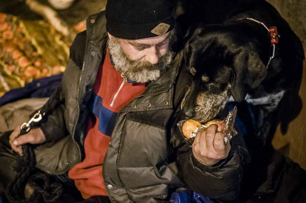 So schnell kann es gehen, doch ab jetzt merke ich jeden Mucks, der von der Straße kommt. So auch den Taxifahrer, der neulich bei uns anhielt, um mich mit Leckerlies zu füttern. Eine Woche später kam er doch tatsächlich wieder, im Schlepptau noch mehr Hundefutter, ein paar Decken für mein Herrchen und mich und einen 10 Euro-Schein. Meinem Herrchen kamen die Tränen.