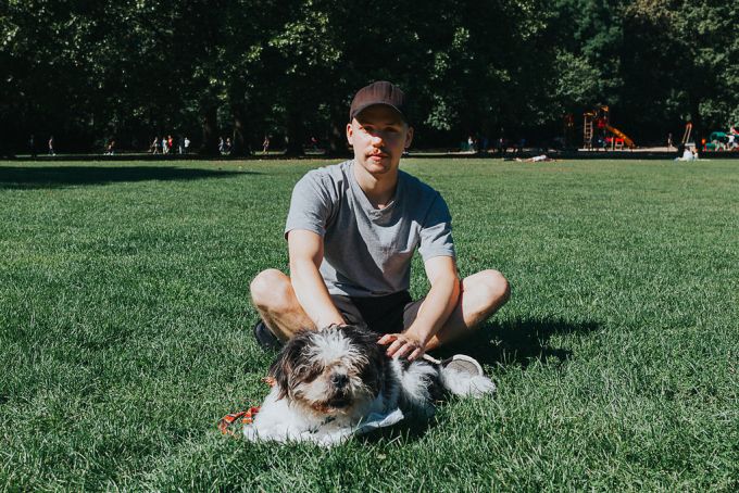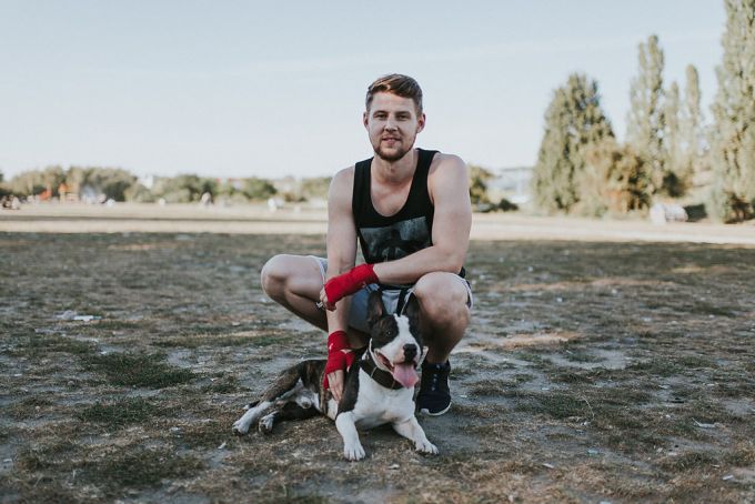 „Ich bin mit Hunden aufgewachsen und wusste, dass ich immer einen haben werde. Ich hab ihn als Welpe zufällig auf ebay Kleinanzeigen gefunden und sofort im Wedding abgeholt. Es war Liebe auf den ersten Blick. Banja gehört zwar zu mir, aber in meinem ganzen Freundeskreis ist er zuhause. Alle sind begeistert von ihm und ich kann ihn bei jedem mal lassen. Das Faszinierende an ihm ist, dass er Streit zwischen anderen Hunden schlichtet. Immer wenn zwei aufeinander gehen, rennt er dazwischen und sorgt dafür, dass sich die Situation entspannt. Hab ich selten so gesehen. Oft haben Erwachsene Angst vor Banja. Kinder wollen ihn gerne streicheln, doch oft sind es die Eltern, die den Kindern das aus Angst verbieten.“