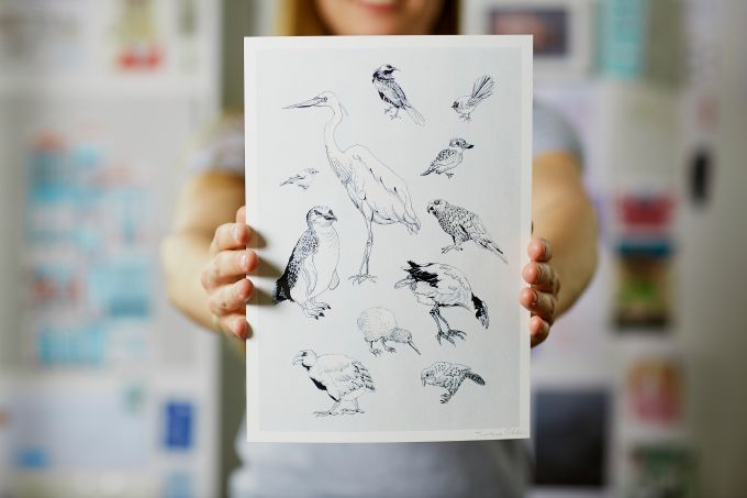 Nun hat sie mit einer Postkarte mit filigranem Vogelmotiv den diesjährigen Etsy Awards, ein Kreativwettbewerb des Online-Marktplatzes etsy.com, den Preis in der Kategorie "Art, Illustration & Paper Goods" gewonnen. Denn neben Berlin zählt auch die Flora und Fauna, besonders die in Neuseeland, zu den Lieblingsmotiven der reisefreudigen Künstlerin. Echte Schmuckstücke für jede Wand und ein besonderer Postkartengruß für alle Freunde von Tinte und Feder(n).