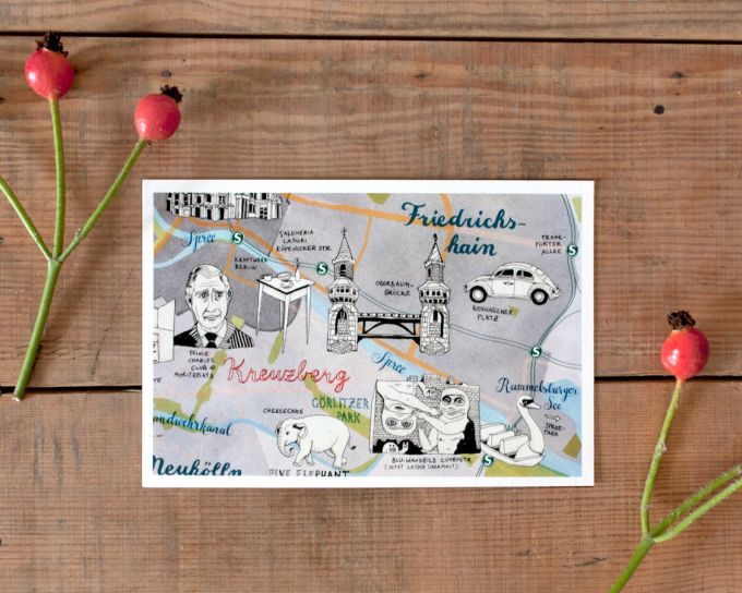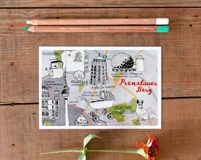 Grüße aus Berlin an Freunde und Familie zu versenden geht heute wunderbar einfach: Nur schnell das berühmte Selfie vor dem Fernsehturm geknipst und an alle im Gruppenchat versendet. Fertig. Geht fix, ist aber auch ein bisschen lieblos. Das genaue Gegenteil davon sind die wundervollen Post- und Stadtkarten, die die Illustratorin Theresa Grieben von Berlin zeichnet. Die sind nämlich so hübsch, dass man sie am liebsten an sich selbst schicken würde.