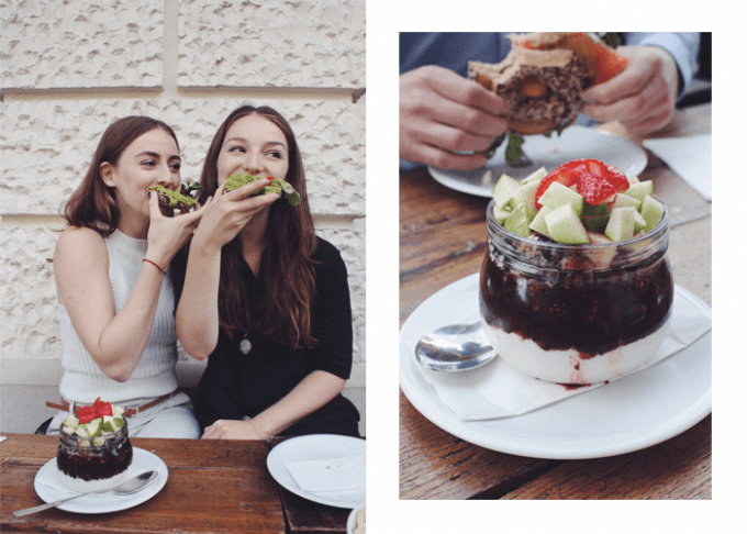 Wirklich ganz kann man dennoch nicht vergessen, dass das Café nur ein paar Schritte vom Ku’damm entfernt ist. Das Publikum erinnert einen wieder daran. Neben jungen Familien, Pärchen und Anzugträgern aus den benachbarten Büros findet man hier eben auch das Klischee: Mädels, die sich hinter einer Schicht Make-Up und der neusten Designerbrille verstecken, Typen die ihre dicken Schlitten demonstrativ in zweiter Reihe parken und geliftete Damen mittleren Alters. Uns geht es aber ums Essen, Personal und Atmosphäre und die sind hier echt gut.