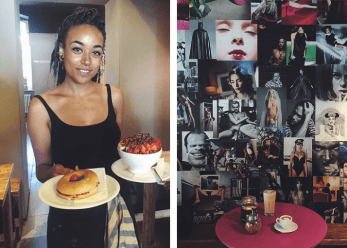 Zwei Jahre lang quetschten und drängten sich die Gäste in dem schmalen, kleinen Café der Brüder Giacomo und Ritchie, bis im Winter 2014 erweitert werden konnte. Wand raus, mehr Tische rein – ganz nach dem Motto “bigger is better”. Ein echter Hingucker und der Favorit für schnieke Instagramposts ist die mit Modefotografien tapezierte Wand im großen Raum. Auch hinten in der Küche gibt’s anstatt Tapete Comics an den Wänden. Frische Blumen und große Industrielampen runden den Shabby-Chic-Look perfekt ab. Berlin-Charlottenburg sieht eigentlich anders aus – so gefällt’s uns aber viel besser.