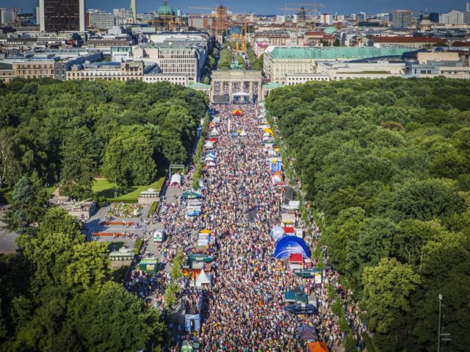 Fast jedes Wochenende findet eine Veranstaltung oder Demo rund um das Brandenburger Tor statt. Egal, ob gerade die Fanmeile zur EM oder der CSD, dass man die freie Sicht vom Brandenburger Tor entlang der Straße des 17. Juni bis runter zur Siegessäule genießen kann, kommt selten vor.