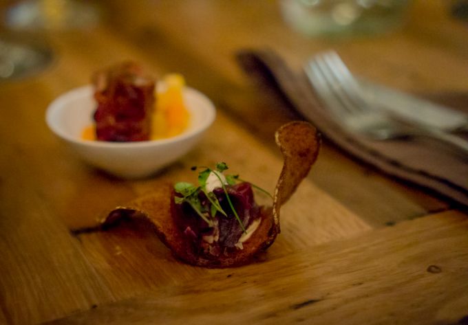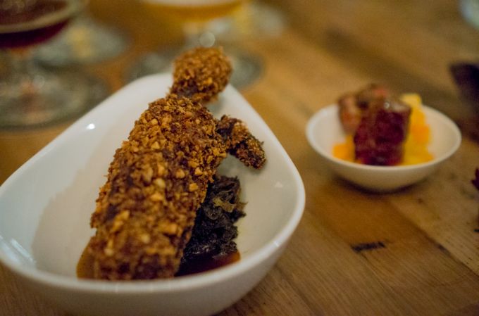 Passend zu den Bieren werden die Speisen im Restaurant kreiert. Auf der Karte findet sich derzeit zum Beispiel in Bier gekochter Schweinebauch oder Barsch mit Senf- und Pale-Ale-Vinaigrette. Zum Xocoveza wird knusprige Entenkeule mit Rotkohl, Nüssen und Schokosoße serviert. Und auch beim Salat und den Suppen werden Liebhaber des Herzhaften glücklich: Rucola mit in Rotwein glasiertem Oktopus oder eine Double-IPA-Suppe. Ihr merkt schon, Kalorienzähler sollten lieber zuhause bleiben.