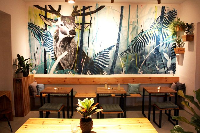 Das Interieur ist stylish-unaufgeregt samt Hirsch-Wallpainting des japanischen Street-Art Künstlers Twoone. Aber Hand aufs Herz: Ihr werdet kaum dazu kommen, die Inneneinrichtung zu bestaunen, denn gerade die Bowls sind so farbenfroh und detailverliebt, dass sie eure gesamte Aufmerksamkeit fordern.