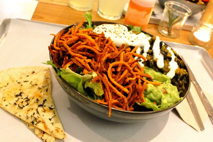In puncto Bowls stehen vier leckere Alternativen zur Auswahl, die beiden Spitzenreiter sind die vegane "Holy Bowl" mit gegrilltem Gemüse und Kichererbsen sowie die "Viva Bowl" mit Süßkartoffel-Stäbchen, pochiertem Ei und Sour Cream. Der Durst wird gelöscht mit hausgemachter Limonade – oder wahlweise verstärkt mit ebenfalls hausgemachter Chilisoße.