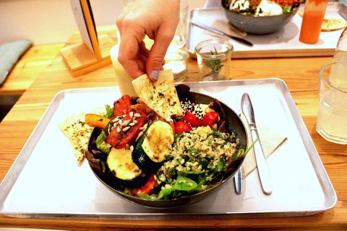 Die Flats hören auf Namen wie „Guter Junge“ (eine Hommage an gutbürgerlich-deutsche Küche samt Kartoffelpüree) und „Run Veggie Run“ (u. a. gefüllt mit Kürbis und Hummus). Wer großen Hunger verspürt, kann noch eine Extraportion seiner Lieblingsbeilage wählen (beispielsweise Guacamola-Dip und Quinoa-Taboulé) oder saisonal wechselnde Suppe on top bestellen.