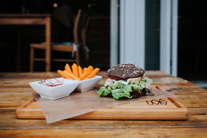 Unbedingt probieren // Im August noch den Hamburger Rawyal TS aus einem Sonnenblumenkernen-Leinsamen-Dattel-Apfel Bun mit Avocado, Teriyaki Pilzen, Cashew Fromage und Karotten 'Pommes', Blue Chai mit Limette - Magie! Im September gibt es RAWe Falafel Bällchen!