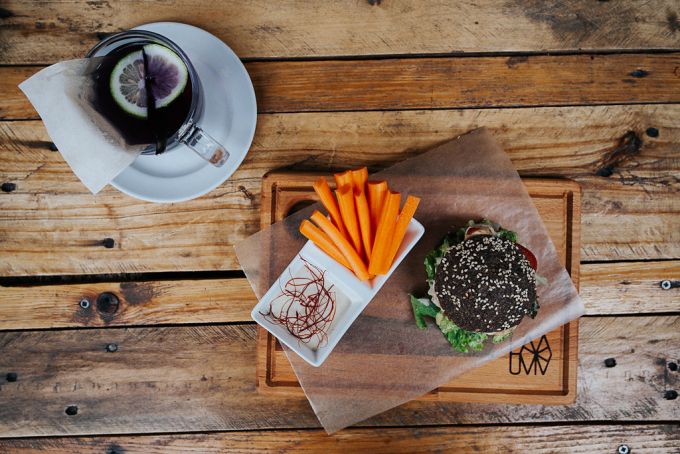 Und so sind auch die Monatsmenüs gestaltet. Sogar der angebotene Tee macht abenteuerlicher Dinge. So wird aus dem Blue Chai, kombiniert mit einer Limette, ein granatenpinkes Getränk. Auch sonst kommt keine Langeweile auf, denn es gibt immer mal wieder Special-Events im Laden. Sei es ein Burger-Bastel-Contest, Dinnerabende oder einfach der Brunch am Samstag.