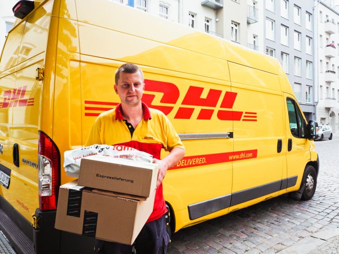 Ein DHL-Wagen parkt neben mir in zweiter Reihe. Ich frage den Fahrer Michal, wie die Zustellung seit dem Ausnahmezustand läuft.