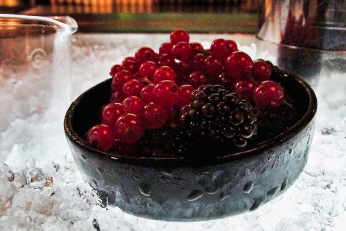 Christian, der bereits hinter den Tresen der Drayton Bar und des Waldorf Astorias stand, empfiehlt den regionalen Drink mit Riesling Spätlese. Dazu kommen Verjus, Zitronenverveine und grüne Walnuss, alles regional versteht sich. Beim Zusammenstellen der heimischen Kreationen verwendet Christian ausschließlich Produkte aus der Region. Zucker und Zitrone haben da mal Pause und kommen ein paar Seiten später zum Einsatz. Der Cocktail mit Tanqueray Gin und roter Beete, verrät mir Christian, ist aus einem Salat entstanden. Klar, wenn Ananas, rote Beete und Minze auf dem Teller zusammenpassen, warum dann nicht als Drink?! Und auch hungrige Gäste bekommen hier was Feines mit einer ordentlichen Portion Bodenständigkeit: frittierte Eisbeinbällchen, Bratwurst, Roastbeef auf Brioche oder ein Berliner Stullenbrett. Ist schließlich immer noch Berlin, da kann man zum edlen Schampus ruhig mal ‘ne Wurst verdrücken.