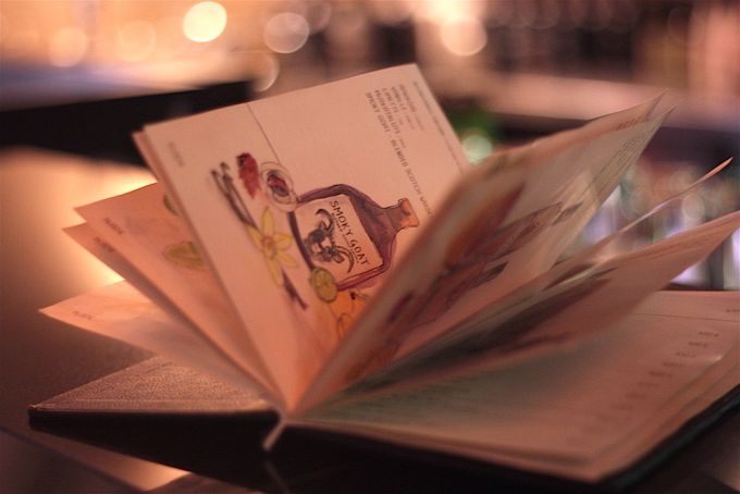 Richtig bunt und kreativ sind nicht nur die Drinks, sondern auch die Karte. “Wir wollten keine normale Karte haben, bei der die Cocktailnamen fettgedruckt stehen und darunter alle Zutaten aufgereiht sind”, erklärt Christian. Für die Cocktailkarte hat er die Berliner Illustratorin Clara Schicketanz engagiert. Dabei herausgekommen sind bunte Bilder der jeweils sechs Drinks mit regionalen und internationalen Einflüssen. Uns wundert es beim Durchblättern gar nicht, dass auch die Karte ein Anwärter für den Mixology Bar Awards in der Kategorie “Beste Karte” war.
