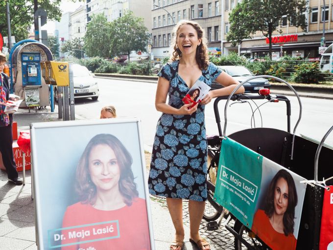 „Ist mir egal. Ihr Politiker seid doch alle gleich!“ Dann knallt er die Tür zu. Wir gehen weiter zur nächsten. Maja drückt auf die Klingel und ihr Lächeln ist ungetrübt. Vor uns liegen noch vier Stockwerke mit jeweils drei Wohnungen. Danach wartet der nächste Block. Haustür-Wahlkampf im Wedding. Seit Anfang Juli macht Maja das schon. An jedem einzelnen Tag.