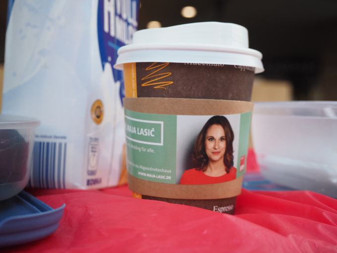 "Kaffee mit Maja" findet einmal pro Woche statt. Eine von vielen Formen, die Aufmerksamkeit der Wähler zu wecken. Als ich einmal vom Einschenken hochschaue, sehe ich, wie jemand bei Frau Lasićs Anblick zu lachen beginnt.