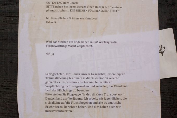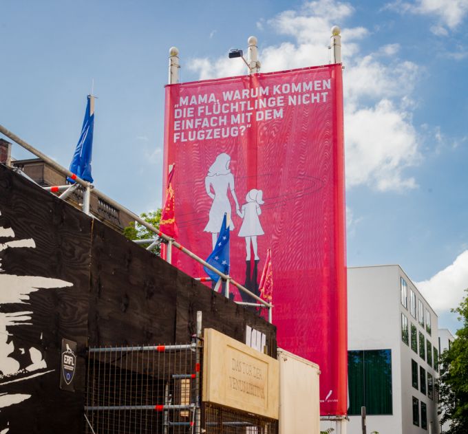 Die Aktion stammt von dem Zentrum für Politische Schönheit, die gern mit aufsehenerregenden Aktionen die Ecken von Politik und Geschichte beleuchtet, die sonst ganz gerne unbeleuchtet bleiben. In diesem Fall die EU-Richtlinie 2001/51/EG, die hohe Strafen für Fluggesellschaften vorsieht, die Flüchtlinge ohne geltendes EU-Visa transportieren. Sprich: Die Geflüchteten müssen mit dem Boot übers Mittelmeer, weil sie schlichtweg nicht fliegen dürfen. Gorki-Theaterkolumnistin Mely Kiyak kommentiert: "Nun ist es aber so. Kommen die Flüchtlinge mit dem Boot oder zu Fuß ohne gültige Aufenthaltspapiere an, wird niemand bestraft. Das lässt nur einen Schluss zu. Man spekuliert darauf, dass nicht alle ankommen, die sich auf den Weg machen."