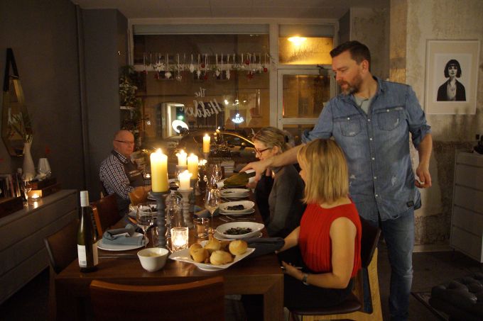Das Schöne an gutem Essen ist ja, dass es einen in regelmäßigen Abständen mit tollen Menschen zusammen bringt. So zum Beispiel auch mit Daniel, den wir vor einiger Zeit schon mal in seinem Supper Club zu Hause besucht haben. Damals waren wir beim gemeinsamen Abendbrot schon sehr begeistert von seinen Koch- und Gastgeberkünsten. Umso mehr hat es uns jetzt gefreut, als die Nachricht von Daniels eigenem kleinen Koch- und Pop-Up-Laden The Hidden im Prenzlauer Berg ins Haus geflattert ist. Wir durften nun beim ersten Kochkurs, bei dem es um das Kochen eines echten Festtagsschmauses ging, mit dabei sein und haben gemeinsam mit Daniel und seinen Gästen den Kochlöffel geschwungen.