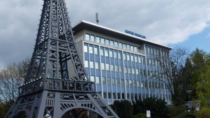 Fast wie in Las Vegas: Vor dem Centre Français im Wedding steht eine Miniatur-Ausgabe des Pariser Eiffelturms. Platz für ein Picknick ist hier nicht wirklich, aber für ein Selfie, um Freunde und Familie zu bespaßen, auf jeden Fall. Hihi.