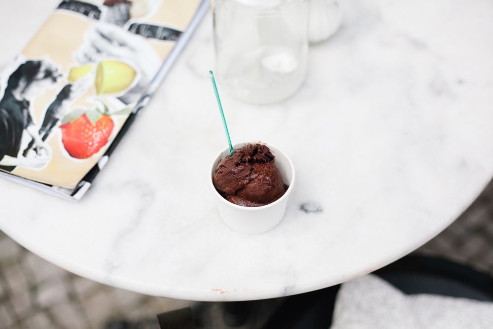 Spätestens dort kommen euch zahlreiche Menschen mit Eis in der Hand entgegen – die waren alle bei Cuore di Vetro. Dort, so wird gemunkelt, gibt es das beste Eis der Stadt. Die Kugel Schokoladensorbet, die mir Dean über den Tresen reicht ist jedenfalls in einem Wort magnifico.