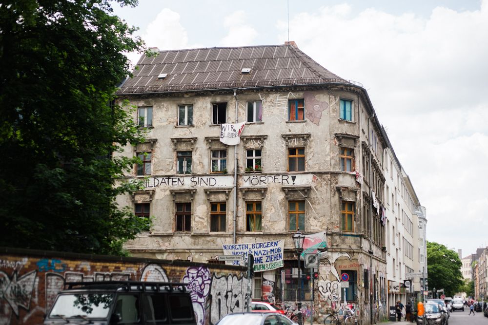 Eigentlich könnten wir den halben Tag beim Shop-Hopping in der Mulackstraße verbringen, aber das wäre schade, denn wir haben auf unserer Route noch so einige Perlen und Geschichtenerzähler zu besuchen. Deshalb weiter über die Gormannstraße in die Linienstraße, denn von dort seht ihr sie schon von weitem: Das seit 1990 besetzte Haus Linie 206, das erst vor Kurzem geräumt wurde.