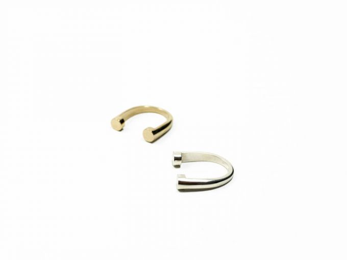 Die Details in Elena Tezaks Schmuck offenbart sich erst nach mehrmaligem Hinschauen. Ein Armreif ähnelt einem Diskus, ein Ring hat die Form eines Ds. Tezak ist eben nicht nur Schmuck-, sondern auch Produktdesignerin und weiß, wie man Menschen mit intelligentem, schönen Design glücklich machen kann.
