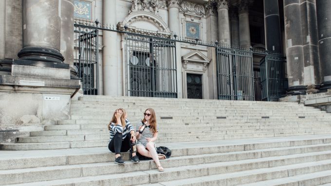 3 Auf den Treppen des Berliner Doms Touristen beobachten