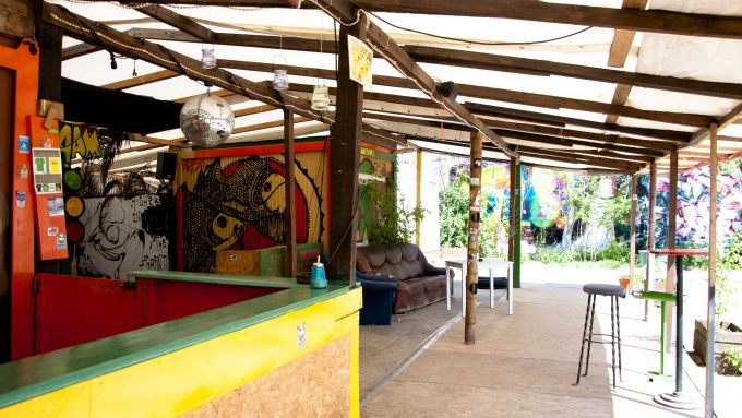Wenn man über die Brücke des Flutgrabens fährt, sieht man schon von Weitem das bunte Treiben am Club der Visionäre. Am Nachmittag ist es hier eher gemütlich entspannt und man kann auf dem Holzsteg sitzen und die Füße ins Wasser hängen lassen. Wenn die Musik lauter und die Menschen mehr werden, tanzt man dann unter Lichterketten bis in die frühen Morgenstunden.