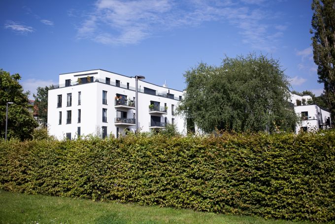 Da der See mit einem Durchmesser von ca. 300-350 Metern nicht gerade groß ist, kann man gemütlich einmal herumschlendern. Weil ich aber noch ein bisschen mehr erkunden möchte, belasse ich es bei einem guten Dreiviertel der Strecke, spaziere vorbei an einem Wasserspielplatz und einem Tiergehege und entdecke wahnsinnig schicke, weiße Häuser, die mich von der Architektur und mit ihrer Nähe zum Wasser ein bisschen an Alt-Stralau erinnern.