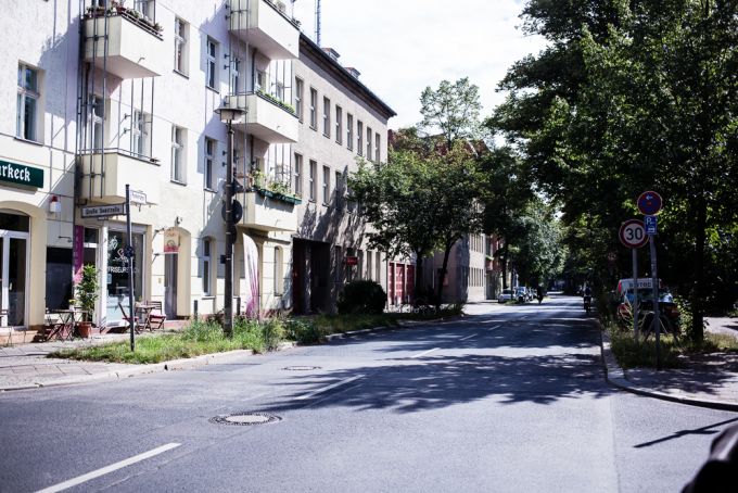 Ich folge der Großen Seestraße eine ganze Weile und bin ziemlich verliebt in Weißensee. Alles ist hier so entschleunigt. Ich treffe kaum Menschen auf der Straße und genieße es, mir die hübschen Einfamilienhäuser anzuschauen, irgendwie erinnert mich das an meine Heimat. Hier gibt es keine Spätis an jeder Ecke, keine Rollkoffer, die über den Asphalt gezogen werden, sondern Eigenheime und große Gärten, die mit hübschen grünen Gartenzäunen voneinander getrennt sind.