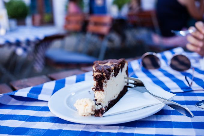 Mein letzter Halt ist das Café Mirbach, das am gleichnamigen Platz Tische mit niedlichen weiß-blau karierten Tischdecken auf dem großen Bordstein stehen hat. Das Café gehört zwar sicher nicht zu den hippsten Lokalen der Stadt, aber nach dem langen Laufen, das sich ein bisschen wie Urlaub angefühlt hat, ist es nahezu perfekt, um hier einzukehren, die Füße zu entspannen und ein leckeres und sogar noch warmes Stück Zupfkuchen zu verdrücken.