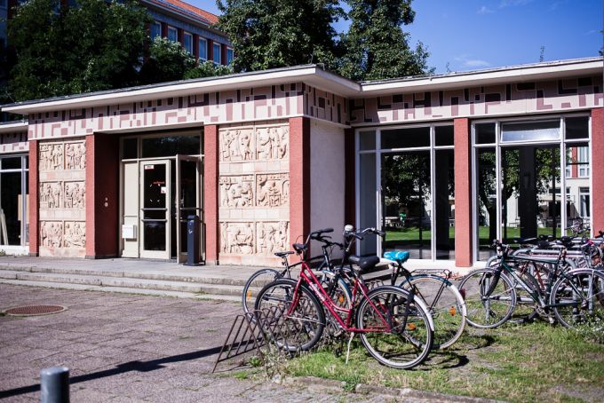 Vom vielen Laufen werde ich langsam hungrig und wie es sich für einen richtigen Ausflug gehört, würde ich jetzt am liebsten ein großes Stück Kuchen samt Kaffee herzaubern. Aber genauso, wie es hier keine Spätis gibt, scheinen auch die Cafés ziemlich rar zu sein, denn bisher habe ich noch keines gesehen. Bei meiner Suche nach einem Café komme ich an der Kunsthochschule Weißensee vorbei, die 1946 gegründet wurde, ihre Räumlichkeiten lustigerweise in den Resten einer Schokoladenfabrik gefunden hat und schon einige namenhafte Künstler wie Georg Baselitz hervorgebracht hat. In seine Fußstapfen wollen die rund 800 Studierenden sicher auch gerne treten, aber nicht heute, denn es sind Semesterferien und kaum ein Student ist in Sicht. Und obwohl Studenten bekanntermaßen im Café sitzen zu einer Art Sport erkoren haben, scheint es auch hier keine Cafés zu geben. Also laufe ich weiter, die Pistoriusstraße entlang.