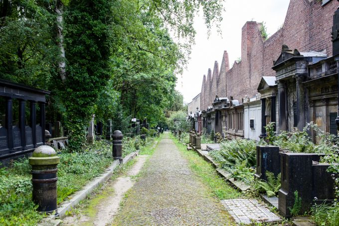 Normalerweise finde ich Friedhöfe gruselig, alles ist still, man verfällt augenblicklich in einen Flüsterton und die vielen ruhenden Gräber lösen irgendwie ein unangenehm bedrückendes Gefühl in mir aus. Aber hier ist es anders. Dieser Friedhof ist so unglaublich grün, die Gräber teilweise so nah beieinander, dass man gar nicht an ihnen vorbeilaufen kann, und es sich gar nicht anfühlt, als würde man über einen Friedhof gehen. Nachdem ich eine große Runde gedreht habe, weiß ich, wieso der Mann am Eingang mir die Schließzeiten gesagt hat: hier kann man sich wirklich in der Zeit verlieren und den ganzen Tag schlendern.