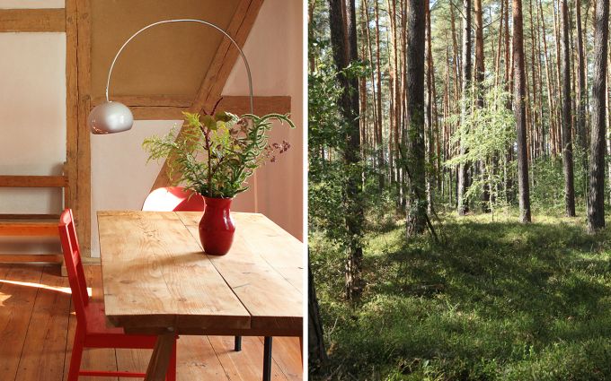 Nicht nur die Umgebung, sondern auch die Unterkünfte von Re:Hof Rutenberg sind echte Hingucker. In den hohen, lichtdurchfluteten Räumen fühlt man sich sofort wohl. Jedes Apartment hat seinen ganz eigenen Charakter. Hinten, im verwilderten Teil des Gartens, stehen drei besondere Holzhäuser. Auch von hier aus bieten sich jede Menge Aktivitäten an, zum Beispiel eine Kanutour oder eine Wanderung zur Kaffeemühle in Lychen.