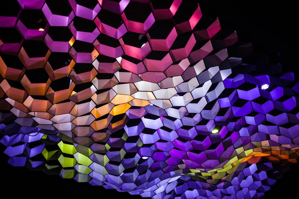 Dienstag, 09.05., 21.05 Uhr – Mitte, Brunnenstraße: Sharlie Cheens leuchtende Deckeinstallation. © Daliah Hoffmann