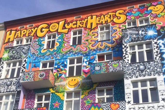 Hotelbetreiber Alexander Skora wehrt sich dagegen – nicht zum ersten Mal übrigens, der Rechtsstreit um die Fassade seines Hostels besteht bereits seit 2012. Er sieht die bunte Malerei als Kunst und fühlt sich durch die Androhungen des Bezirksamtes unterdrückt. Um sich Unterstützung zu holen, gibt es nun auf der Website des Happy Go Lucky eine, sagen wir mal, Suggestiv-Umfrage, bei der die Nutzer abstimmen können, ob die Fassade bunt oder grau sein soll. Wir sind natürlich für bunt, aber sollte es auf eine einheitliche Farbe hinauslaufen, würden wir ganz subjektiv einfach gelb vorschlagen. Das ist nicht so öde wie grau und Christian Lindner guckt dann vielleicht nicht mehr so traurig wie auf den Wahlplakaten.