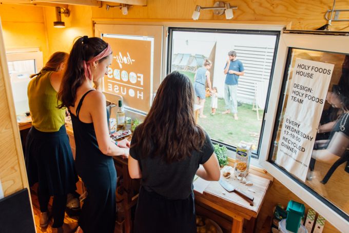 Der Grundgedanke von den Tiny Houses ist, einen Platz für alle Menschen zu kreieren. So wohnten in den vergangenen Monaten auch schon Flüchtlinge in den Häusern. „Einen Plan für das gemeinsame Essen am Mittwoch gibt es nie“, teilt mir Amelie, die Informationsmanagerin, mit. „Es kommt immer drauf an, was wir an Lebensmitteln bekommen und was davon weiterverwertet werden kann.“
