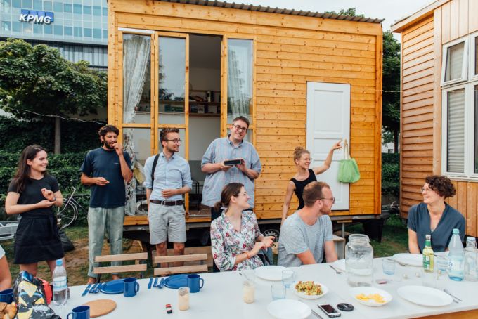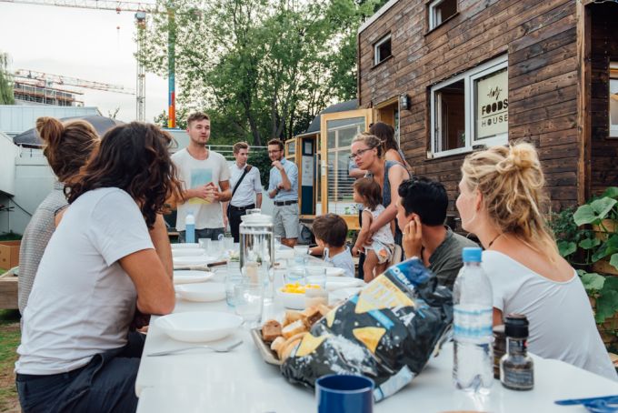 Vor ein paar Wochem haben wir erst über die Tiny Houses am Bauhaus Campus berichtet, eine praktische, günstige und langfristige Lösung für die Wohnungsknappheit in großen Städten. Wie durch Zufall befand ich mich dann auch ein paar Stunden später genau dort, besser gesagt an einer langen Tafel im Garten der Tiny Houses. Es wimmelte vor Menschen mit unterschiedlichem kulturellen Background, die hin- und herliefen oder fleißig Gemüse schnippelten.