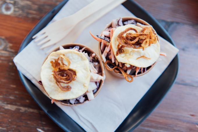Bei den Hot Doggern wird alles selbst und frisch gemacht, sogar das Brot ist eine eigene Kreation, die bei einem Bäcker jeden Tag frisch in Auftrag gegeben wird. Der Ketchup besteht aus Biotomaten und wenig Zucker und die knackigen Pommes werden mit Oregano verfeinert. Alle tierischen Produkte stammen aus der Freilandhaltung und es gibt auch einen vegetarischen Hot Dog mit Veggie-Wurst. Auch sonst wird hier auf Nachhaltigkeit geschaut und so sind auch die Servierteller aus Biobambus-Platten hergestellt. Die Stimmung im Laden ist echt toll und man merkt den beiden Freunden den Stress der letzten Wochen auch überhaupt nicht an. Ich denke, man sollte den Hot Dog eine Chance zum Revival geben, denn die zwei Jungs machen echt verrückt-leckere Sachen mit dem sonst eher langweiligen Gericht.