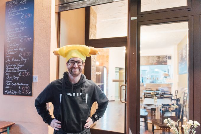 Inhaber Ilan hat früher in einem Münzladen gearbeitet und erzählt uns, warum sein ursprünglicher Traum vom Burgerladen nicht aufging. "Der Schornstein ist zu klein und kann den beim Burgerbraten entstehenden Rauch nicht nach außen befördern. Der Rauch verteilte sich im ganzen Haus und die Bewohner waren nicht sehr glücklich darüber.". Innerhalb von wenigen Tagen musste ein neuer Businessplan und Speisekarten her. Und schwups war die Idee von einem Hot-Dog-Imbiss geboren. Zwei waren eh schon auf der alten Karte.