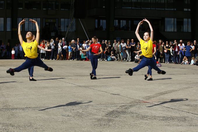 Die neue Spielzeit an der Volksbühne Berlin hat begonnen und mit ihr die erste Saison unter neuer Leitung: Chris Dercon hat als erstes Stück ein zehnstündiges Tanz-Spektakel auf dem Flugvorfeld des ehemaligen Flughafen Tempelhof inszeniert. 150 Tänzerinnen und Tänzer zeigten tausenden neugierigen Besuchern die Performance "Fous de Danse" des französischen Choreographen Boris Charmatz.
